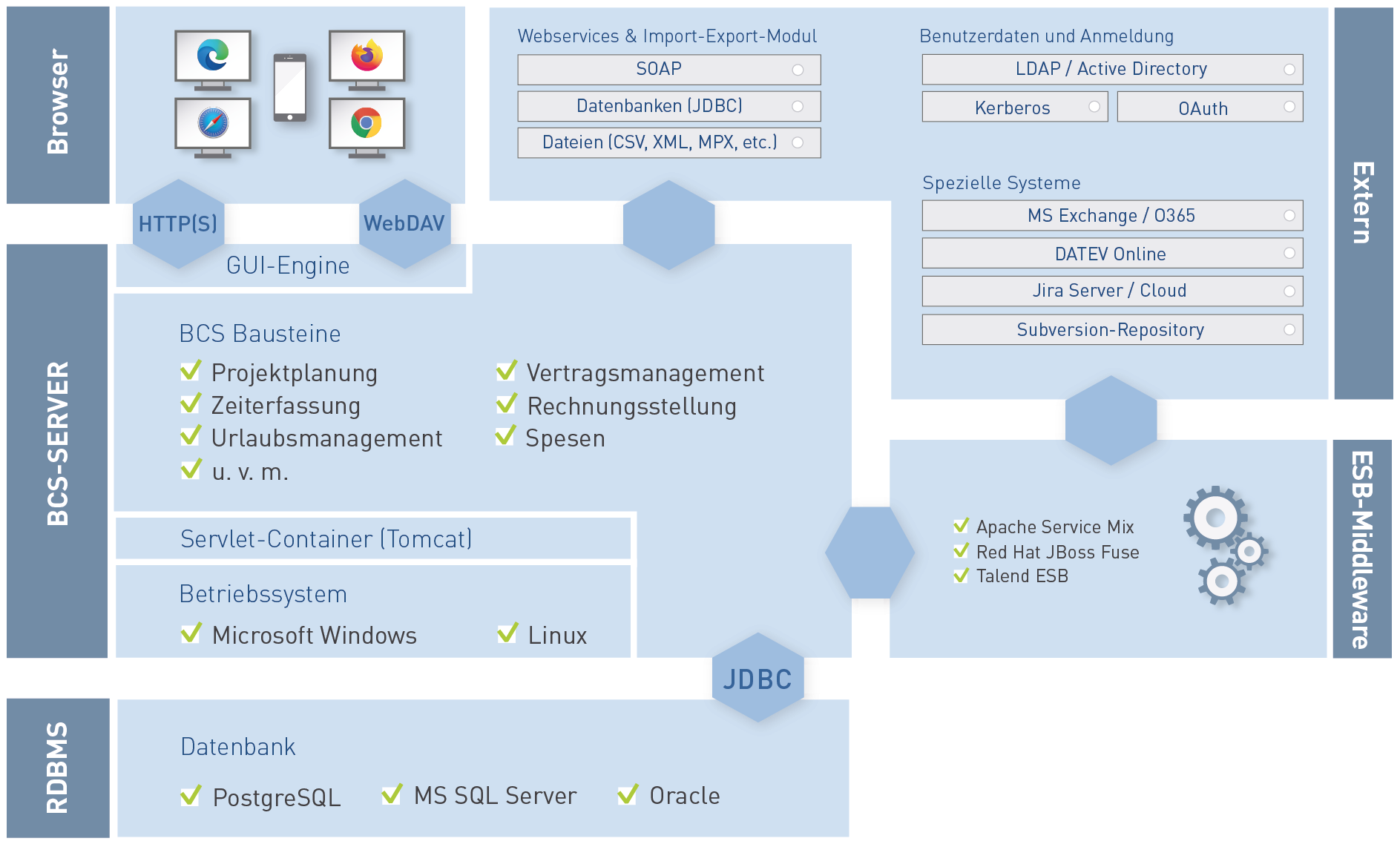 Eine Integration in unternehmensweite Informationssysteme ist dank der standardmäßigen Unterstützung von Apache Camel zukünftig noch einfacher. Projektron steht Ihnen bei der Enterprise Application Integration (EAI) und den damit verbundenen komplexen Projekten unterstützend zur Seite.