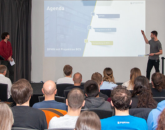 Frühlingstreffen bei Projektron! Am vergangenen Donnerstag versammelten sich zahlreiche Projektronis in Berlin zum Frühlingstreffen 2023. Ein prall gefülltes, aber interessantes und amüsantes Programm mit spannenden Vorträgen erwartete uns: Wie funktioniert die Geschäftsprozessmodellierung nach BPMN 2.0 mit BCS? Welche Maßnahmen stehen zur Verbesserung der Usabilty unserer Software an? Wie schnitten wir beim diesjährigen Wettbewerb von Great Place to Work ab? Ausklang fand die Veranstaltung bei leckeren Wraps, kühlen Drinks und geselligem Beisammensein.