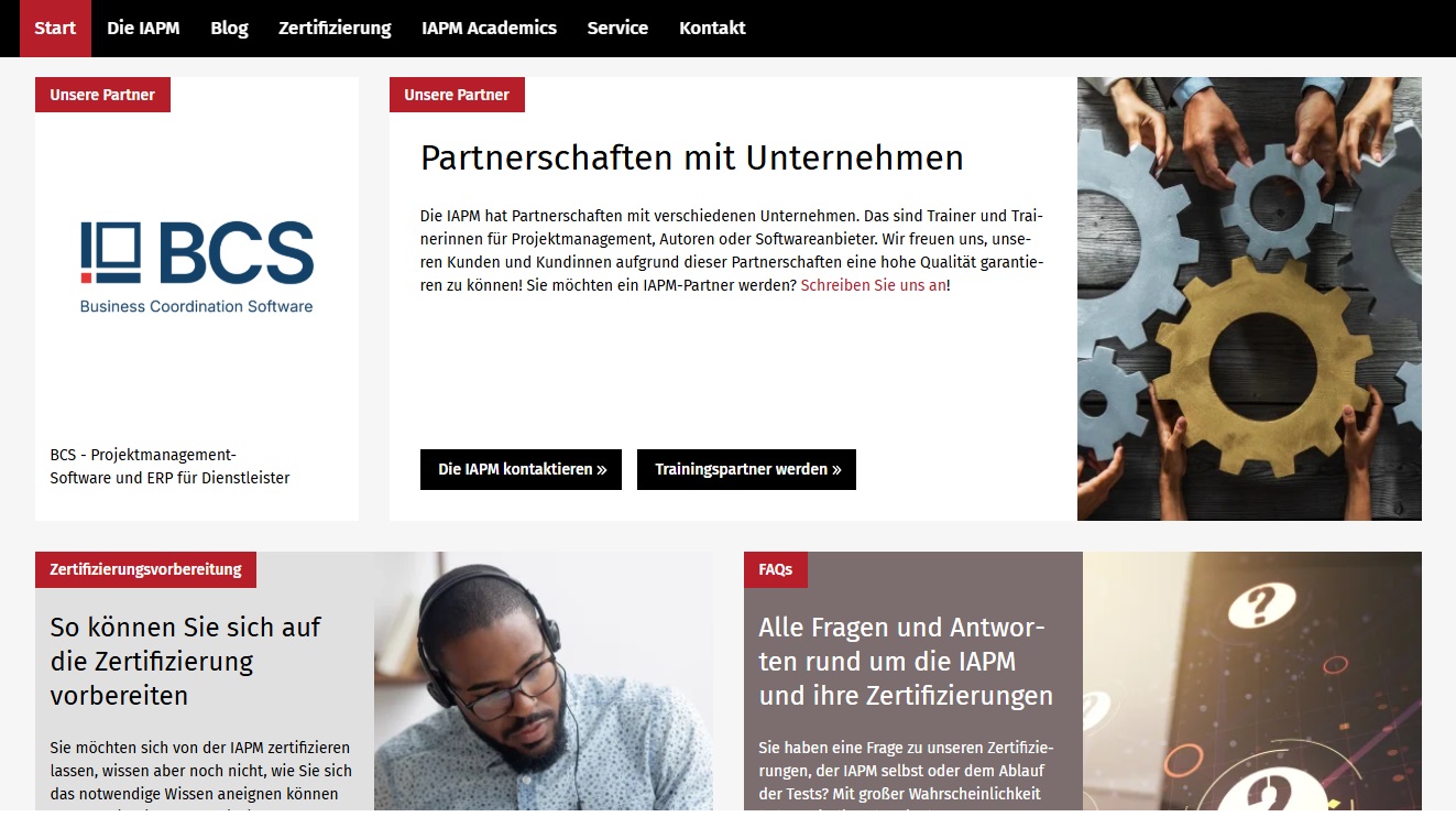 Die IAPM bietet Zertifizierungen vom Junior bis zum Senior Project Manager sowie agile und internationale Varianten für unterschiedliche Erfahrungsstufen.