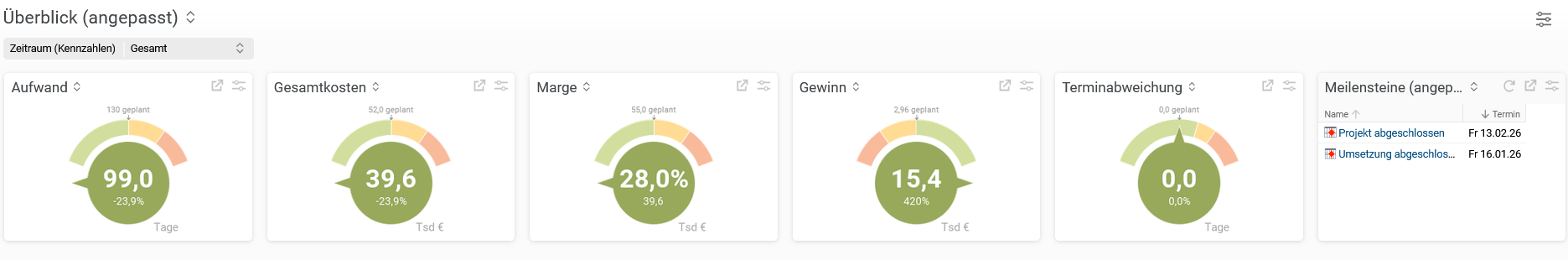 BCS unterstützt dieses Prinzip durch projektspezifisch definierbare Toleranzgrenzen, die visuell in Form von Tachometern für Zeit, Kosten und Aufwand dargestellt werden. Projektleiter erkennen auf einen Blick, ob sich ein Projekt innerhalb oder außerhalb der definierten Toleranzen bewegt.