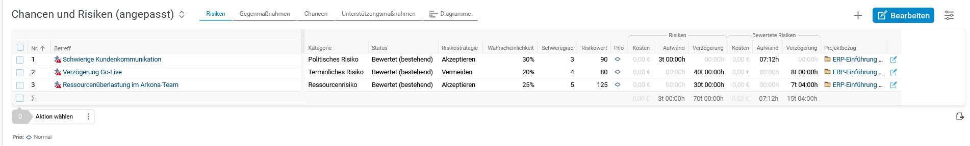 PRINCE2 verlangt in allen Projektphasen ein aktives Risikomanagement. Neben der Erfassung von Risiken unterstützt BCS auch die Definition von Gegenmaßnahmen sowie die laufende Bewertung von Risiken und deren Auswirkungen.