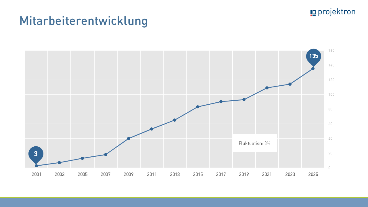 We have grown to a proud 135 Projektronis. Particularly in software development, we have seen a large increase in talent, which was certainly helped by the hiring freeze at large Berlin companies. Instead of working with three Scrum teams as before, we will start 2025 with five teams.