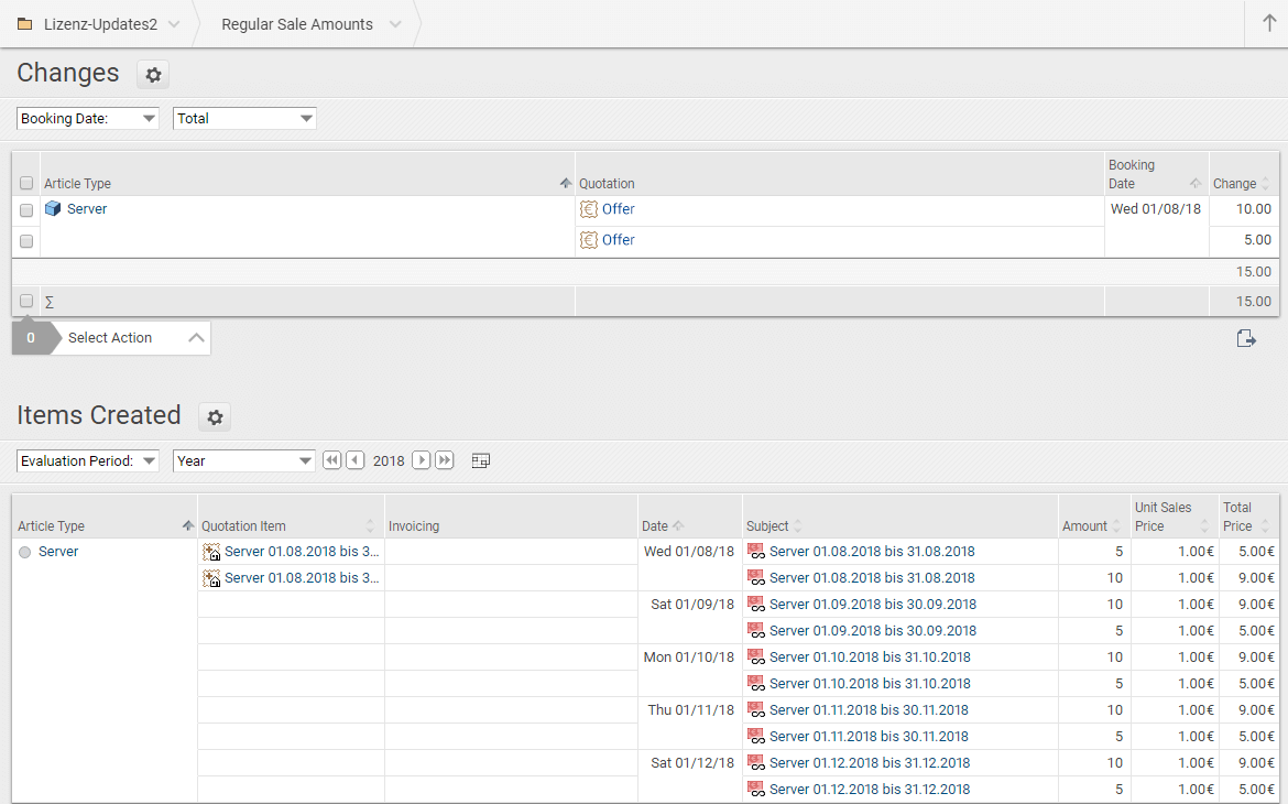 Do you sell articles which have regular follow-up costs, such as update or maintenance fees? In version 18.3 of the Projektron BCS project management software, a transparent overview enables you to view all your articles and the corresponding regular sales amounts. You can enter these regular amounts directly when making a quote and even note the date from which these amounts begin, the intervals in which they shall be charged and whether they are a fixed amount or a percentage share – either of the sales price or the offer price. Discounts can also be mapped flexibly. A cancellation or returning of articles is easily completed using an action. Always stay on top of things with Projektron BCS!