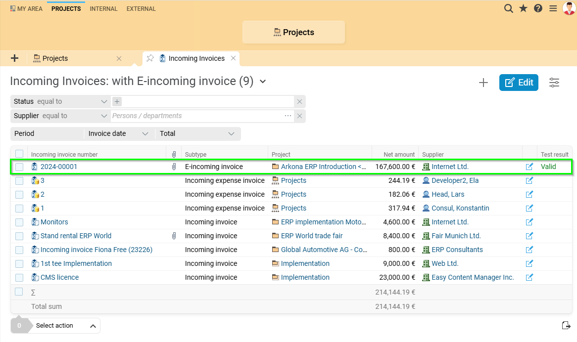 With version 24.4, Projektron BCS offers advanced features to help you implement the e-invoicing requirement from January 1, 2025. The features enable the import and seamless processing of e-invoices, as well as automatic validation in accordance with legal requirements.