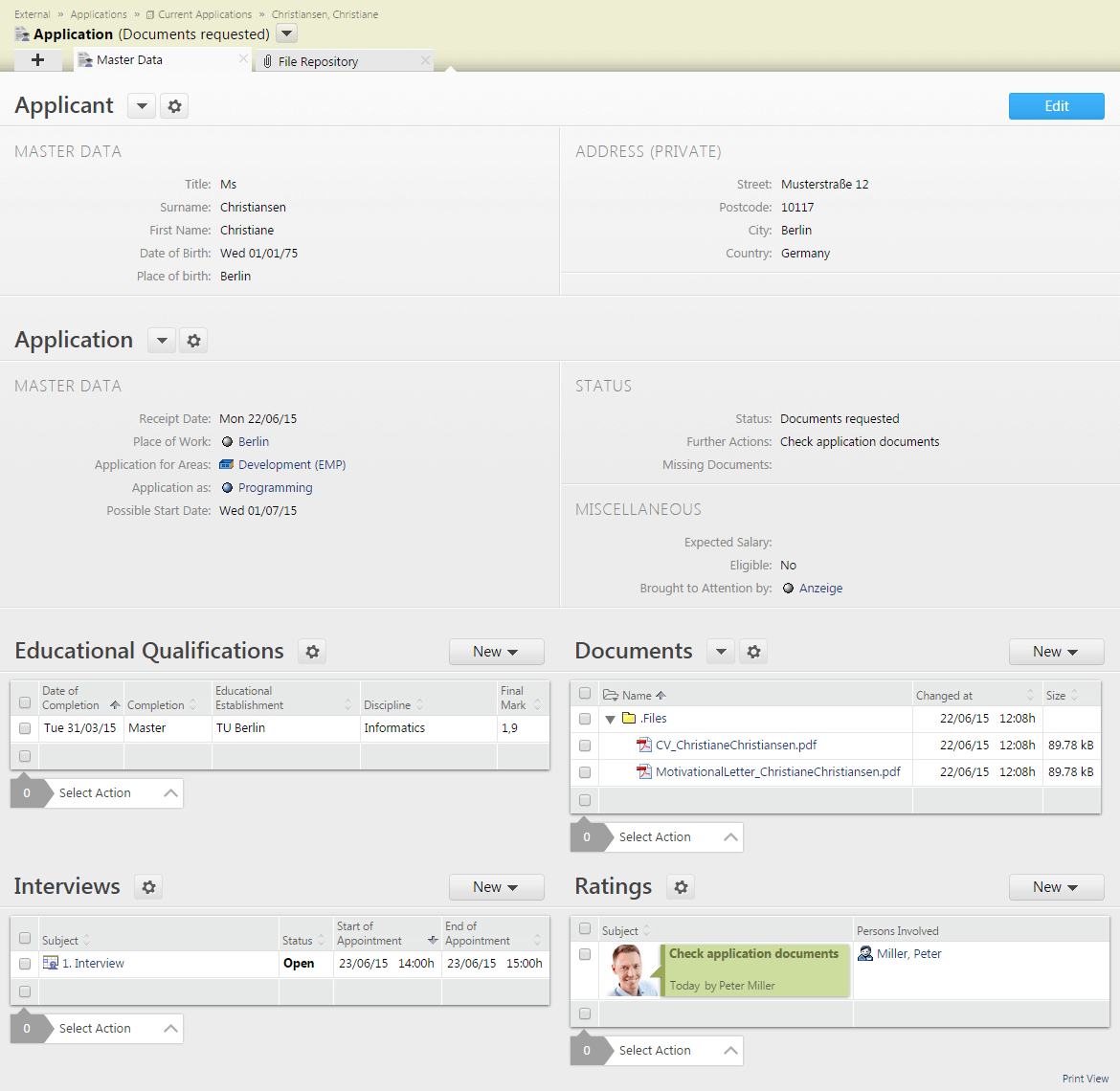 Regardless of whether it is a personnel manager, department head or employee: everyone involved in the application process can store their personal rating, and thereby support the well-founded applicant selection.