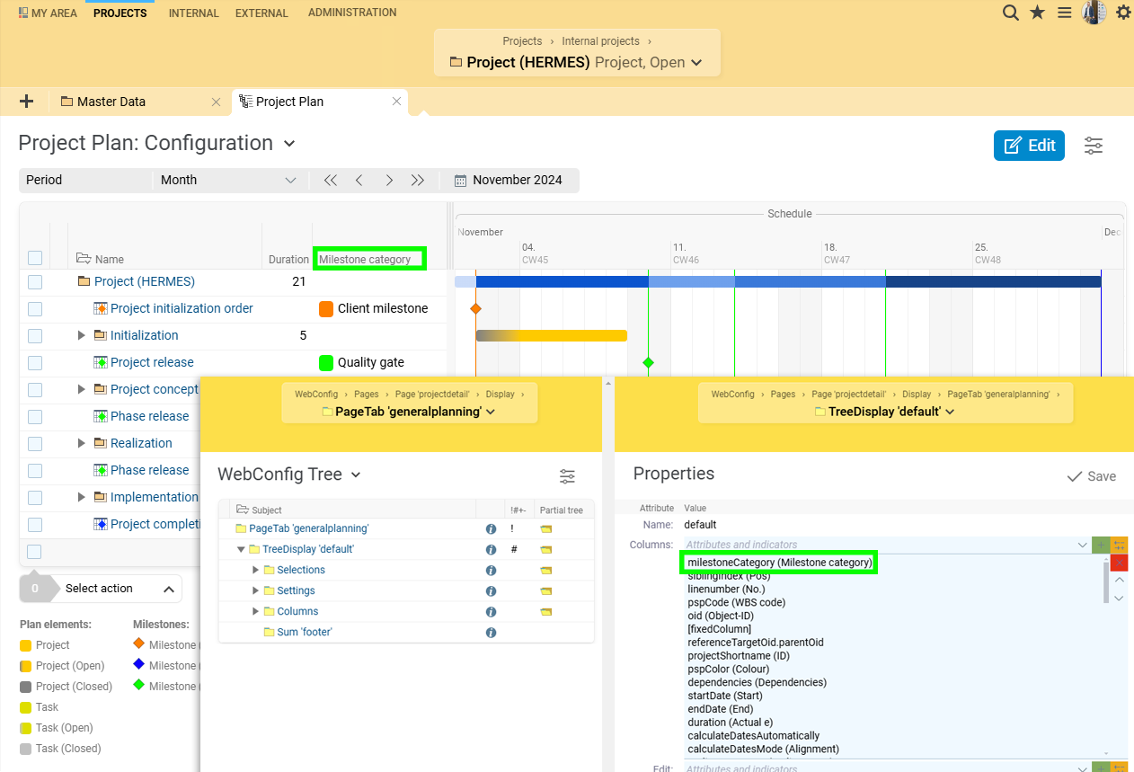 In addition, you can show, hide and store your settings for individual objects such as fields and table columns as required in virtually all Projektron BCS views. Do you have an individual setting that you would like to share with the team? Your administrator can simply copy individual settings for certain people or provide them globally to all people in the team.