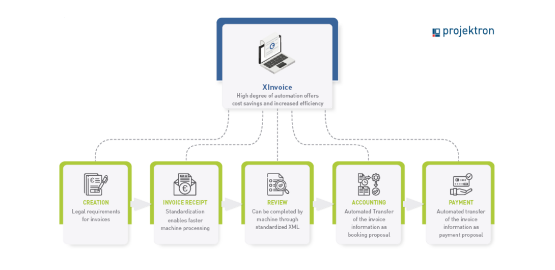 The XInvoice consists of a pure data set without a readable document in image or PDF format. The required invoice information is processed into a structured data format based on XML (Extensible Markup Language) and can be read by machine. This enables standardization of invoices, which should improve the error rate and processing speed of invoices. This automated processing requires minimal manual effort, which speeds up processing and payment.