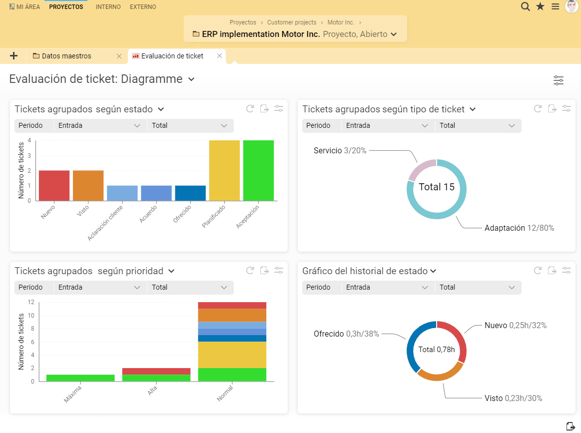¿Es usted gestor de cuentas y desea que su cliente pueda ver de forma independiente los análisis externos de sus tickets en BCS? La vista "Análisis de tickets" permite al cliente visualizar los datos de sus proyectos. Esto significa que sólo se analizan los tickets que proceden de elementos PEP para los que el cliente tiene una asignación de cliente. No se muestran los datos de otros proyectos. Se puede acceder a la vista con la licencia de cliente.
