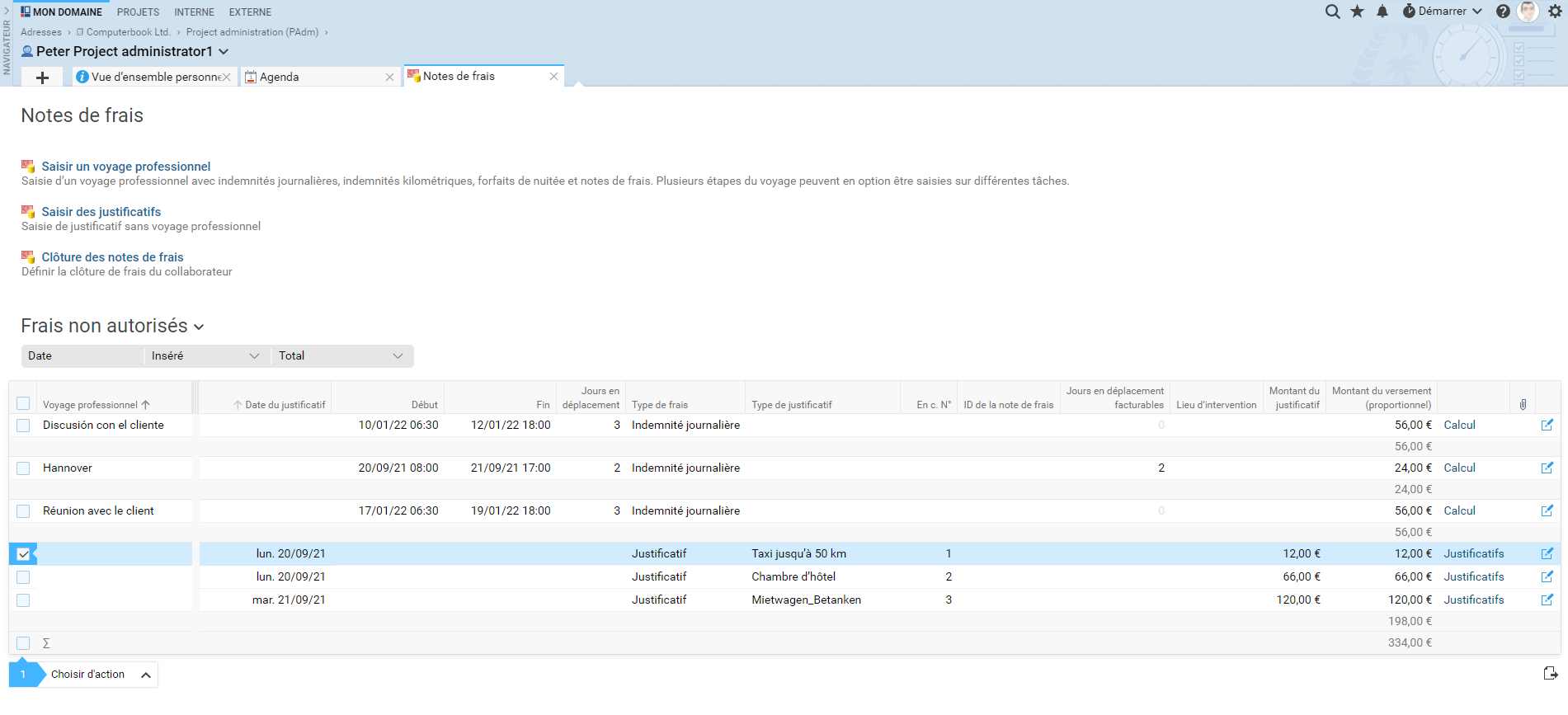 La gestion des frais de Projektron BCS vous assiste dans toutes ces étapes :