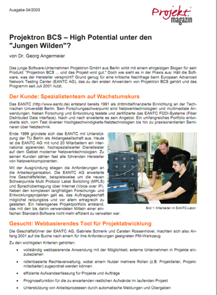 Das junge Software-Unternehmen Projektron GmbH aus Berlin wirbt mit einem ehrgeizigen Slogan für sein Produkt: "Projektron BCS ... und das Projekt wird gut."